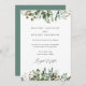 Our beautiful watercolor botanical foliage design is the backdrop for your wedding details on this great announcement card. The muted tones of the green leaf foliage give a timeless classic feel to the design which would be fitting for a wedding in any season. With elegant font for your details.