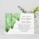 A modern tropical watercolor foliage wedding invitation design featuring beautiful banana leaves. Perfect for a beach or destination wedding, the design template is ready to edit with your wedding details. Tropical leaves graphic by ReachDreams.