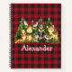 Watercolor Woodland Animals Forest Animals Red Buffalo Plaid Drawing Notebook. Baby Animals include Bear, Deer, Moose, Raccoon, Bunny Rabbit, Fox and Owl with forest greenery. Add Name.