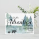 Adventure awaits, rustic woodland bears baby shower invitation featuring mom and baby bear and a watercolor forest in green and blue hues. Rustic woodlands style. Weathered wood texture on the back of the invitation