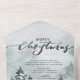Your family photo is featured along with a majestic watercolor forest of evergreen trees. The top of the card has a watercolor greeting that says "Merry Christmas" in hand lettering and a greeting that says "May this holiday season bring you closer to all those that you treasure in your heart. Wishing you a very Merry Christmas and a Happy New Year! You can personalize with your name. The back has a watercolor wash with place to add your return address on the back flap.