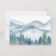 Elegant rustic watercolor mountains and forest scene wedding thank you card, featuring lush blue and green trees and mountains with a script text: let the adventure begin. For those who love a romantic dreamy woodland vibe for their ceremony and celebration.