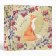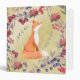 Beautiful watercolor fox with a festive winter berries, branches and flowers border and faux gold foil background.