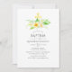 Sage green, yellow and white botanical tropical frangipanis baptism/christening or dedication invitation cards designed to be quickly and easily customized to your event specifics.