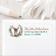 An adorable watercolor portrait of a little fawn colored French Bulldog inside a red berry and pine needle, pine cone wreath is the feature on the left side of these return address labels. Your custom text is in matching red and green at the right. Perfect for anyone who loves a French Bulldog.