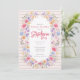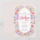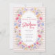 This invitation features soft, airy watercolor florals like the blush and medium pink garden roses and light pink ranunculus. The pale blue hydrangea clusters, peach and butter-yellow cosmos/anemone-style flowers, lavender and soft purple wildflowers, and small ivory/cream filler blooms round off this flower frame with a romantic garden mix. Add in the wispy baby’s breath–style sprigs, tiny clustered buds in muted pinks and creams, and light, dusty eucalyptus-style greenery and you've got a very balanced pastel palette with loose + organic, not tight bouquets. It sets the perfect tone for a bridal / garden / airy, not rustic or moody party, designed to feel lightweight and elegant.