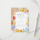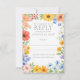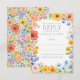 A soft, romantic watercolor floral pattern featuring a cheerful mix of peach roses, golden daisies, delicate blue blossoms, and airy purple florals. The design is densely arranged with lush greenery and varied blooms, creating a vibrant yet balanced composition that feels fresh, garden-inspired, and perfect for a whimsical or elegant invitation.