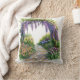 Watercolor Garden Gate Flowery Painting Throw Pillow
