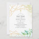 Trendy baptism invite with gold geometric frame designed to be quickly and easily customized to your event specifics.