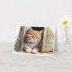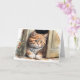 Watercolor artwork of a cute ginger cat in a doorway for getting older birthday humour.