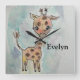 Watercolor Giraffe Hand Drawn Name Square Wall Clock