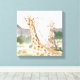 Add an adorable custom safari theme to the bedroom of your little girl or boy with this pretty watercolor giraffe canvas print. Art has a giraffe in front of an African savannah background. There are also flowers and a place for a first name.