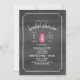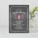 A wedding bridal shower invitation featuring an illustration of a pink camping lantern at centre. Background is dark grey watercolor inspired design. Personalize the text. Reverse is black and white stripes.