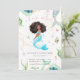 Featuring a beautiful African American mermaid with matching under the sea illustrations. The soft tones reflect the tranquilness of being under the water while exuding an ethereal ambiance. The perfect invitation for the birthday girl's mermaid birthday party. Our African American mermaid invitations offer a great alternative to the many invitations that just don't suit your style. Celebrate your little mermaid with an invitation that represents her!!!