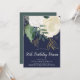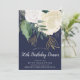 A sophisticated 50th birthday dinner invitation in navy, green, white and faux gold glitter, featuring watercolor roses and leaves and hand lettered style font.