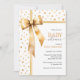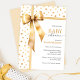 Invite your guests to a chic and sophisticated celebration with our Watercolor Gold Baby Shower Invitation. Featuring a beautiful gold watercolor bow tied with a soft ribbon and scattered golden dots, this design exudes a modern and elegant feel. The delicate script typography and minimalistic layout make this invitation perfect for those seeking a coquette, modern, and elegant baby shower theme.