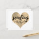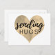 Sending hugs postcard with a gold watercolor heart in the background. A great way to let someone know you're thinking of them.
