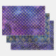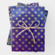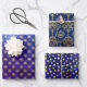This striking design combines luxurious watercolor gradients with intricate gold accents, featuring starry patterns, a classic damask motif, and playful polka dots. The deep purple and blue tones create a dreamy celestial vibe, while the golden details elevate the sophistication of each pattern. Whether you're wrapping a gift or adding a touch of magic to any special occasion, this combination of elegance and whimsy is perfect for those who appreciate high-end, artistic designs with a modern twist.