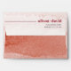 The design of this wedding envelope is elegant and showcases a beautiful watercolor gradient background with a minimalist theme inspired by Japandi style. The back flap of the envelope has a sleek and modern look with a horizontal line. The couple's names are incorporated in a way that gives the illusion of the line extending towards the right side of the envelope. The exterior of the envelope is adorned with a stunning watercolor gradient in warm terracotta and brown red tones, adding sophistication. Inside, the same watercolor gradient background is complemented by a delicate branch with leaves, bringing a natural and organic element to the overall design.