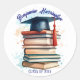 Watercolor Graduation Cap with Book Stack Classic Round Sticker
