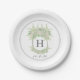 Watercolor Green and White Hydrangea Crest Paper Plate