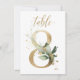 Beautiful table number card with a botanical motif - a watercolor illustration of green and gold leaves. Table 8. Please, check all available numbers