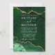 Modern Elegant Watercolor Emerald Green and Gold Marble Agate Geode Wedding Invitation Card
