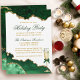 Modern Elegant Watercolor Emerald Green and Gold Marble Agate Geode Holiday Party Invitation Card - White Background with Gold Script. Champagne Glass with Bow.