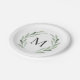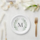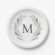 Watercolor Green Olive Branch Wreath Monogram Paper Plate