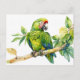 Watercolor Green Parrot on a Tree Branch Postcard