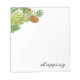 Elegant personalized notepad features watercolor design of green pine branch with two cones at the upper left corner. Personalize with your text at the lower right in handwritten script lettering, or remove if you don't need it. Perfect choice for nature lovers.