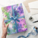 Watercolor paint splash abstract green purple blue wrapping paper.