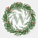 Watercolor Green Wreath Name & Initials Christmas Classic Round Sticker