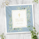 Featuring delicate watercolor leaves on a dusty blue background and an elegant gold crucifix, this chic baptism or christening napkin can be personalized with your special event information. Designed by Thisisnotme©