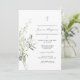 This invitation features watercolor florals and a cross to invite family and friends to a baptism, christening, or first holy communion.