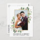 Elegant Watercolor Winter Greenery Married & Merry Wedding Photo Newlywed Holiday Postcard includes eucalyptus leaves and red holly berries. Gold Frame.