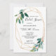 Our watercolor greenery bridal shower invites display a beautiful geometrical frame along with delicate green leaves and lovely fonts. The reverse side features gold confetti.