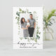 Modern Minimalist Elegance Calligraphy Ink Pen Handwritten Script Happy New Year Photo Holiday Card includes Elegant Watercolor Greenery & Eucalyptus Leaves.