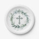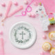 An elegant watercolor wreath of flower buds, sage green leaves and cross, these paper plates - in 2 sizes - are perfect for your child's First Communion, Christening, Baptism, Dedication or any religious event. Available in blue, pink and sage. MATCHING items in our store.