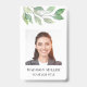 This employee's Company ID security badge features a photograph and logo template on a botanical watercolor greenery background.