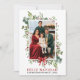Elegant Watercolor Winter Greenery Feliz Navidad Photo Merry Christmas Holiday Card includes eucalyptus leaves and red holly berries. Red Bow Ribbon.