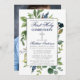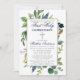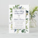 Elegant Watercolor Botanical Greenery First Holy Communion Invitation includes blue accents. Silver Frame. Silver Cross. Photo Back.