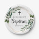 Cross Watercolor Greenery Gold Baptism Paper Plate