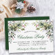 Modern Elegant Watercolor Winter Botanical Greenery and Red Holly Berries Christmas Party Invitation - Green Calligraphy Script