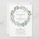 Watercolor greenery olive wreath wedding invitation