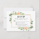 Modern Elegant Watercolor Eucalyptus Greenery Peach Roses Gold Frame Wedding RSVP Card