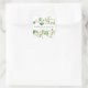 Stylish botanical wedding stickers featuring your names and wedding date framed by painted watercolor leaves in vibrant shades of spring and moss green. Use the elegant wedding stickers as envelope seals or favours. Designed to coordinate with our Watercolor Greenery wedding collection.