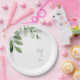 Watercolor Greenery Personalized White Wedding Paper Plate