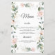 Watercolor Greenery Pink Flowers Gold Wedding Menu