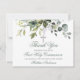 Elegant First Holy Communion Thank You Card with Silver Cross includes watercolor eucalyptus leaves and other beautiful botanical greenery foliage. Sage Green Text.